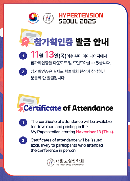 - [Hypertension Seoul 2025] Scientific Program and Venue Information 2025-11-04