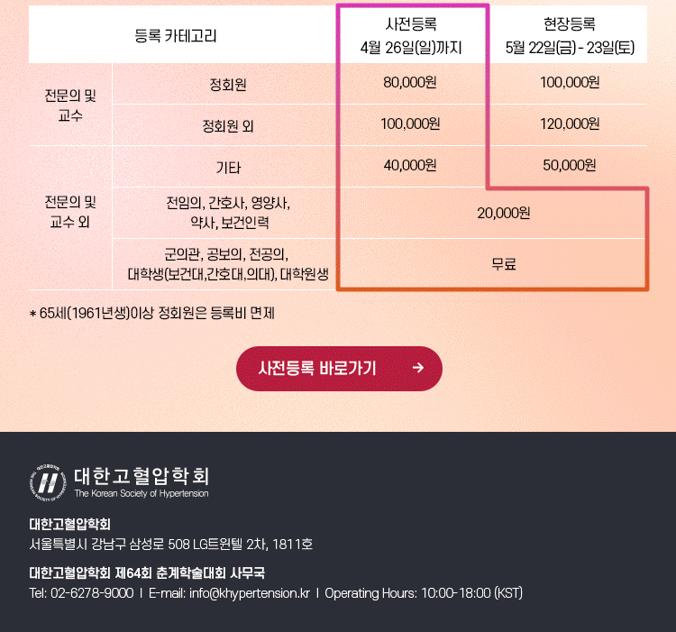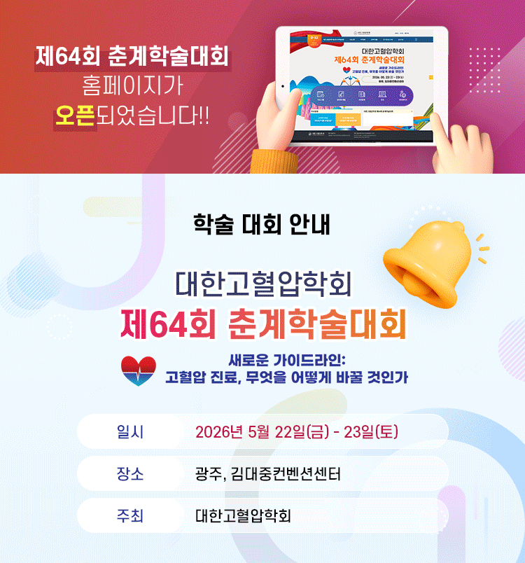 [대한고혈압학회] 2026년도 제64회 춘계학술대회: 등록페이지 오픈 안내