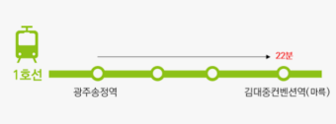 김대중컨벤션센터(마륵)역 하차 -> 5번출구로 나와서 직진(3분 소요) |