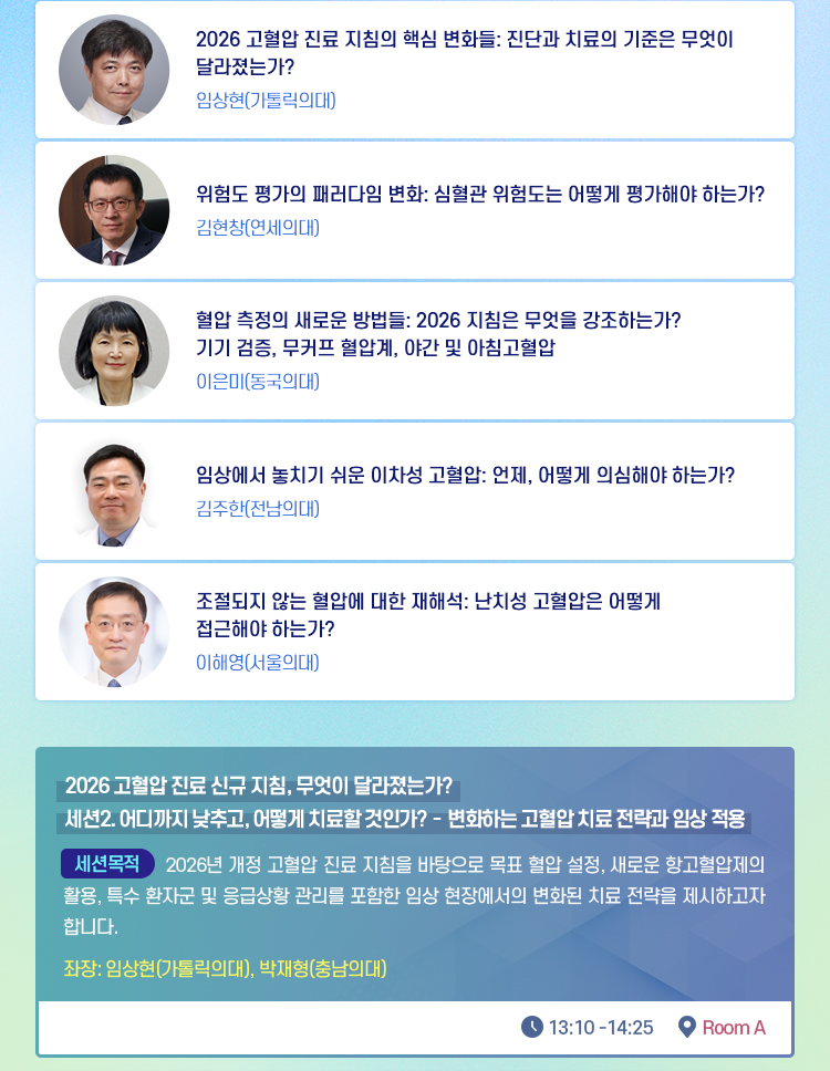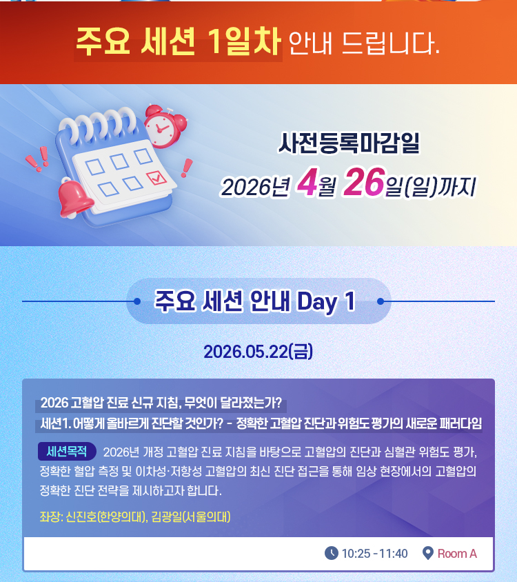[대한고혈압학회] 2026년도 제64회 춘계학술대회: 주요세션안내 Day1