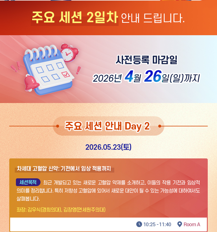 [대한고혈압학회] 2026년도 제64회 춘계학술대회: 주요세션안내 Day2