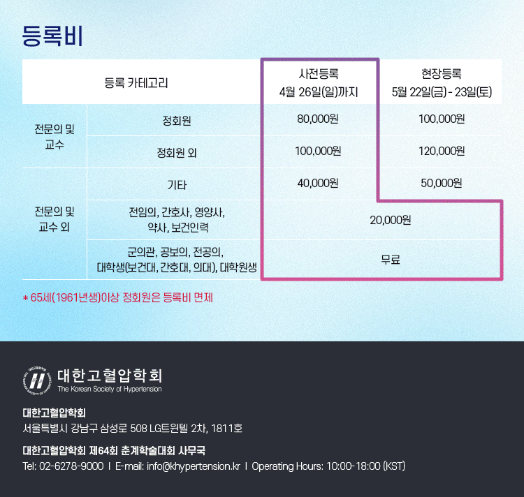 [대한고혈압학회] 2026년도 제64회 춘계학술대회: 사전등록마감 D-2