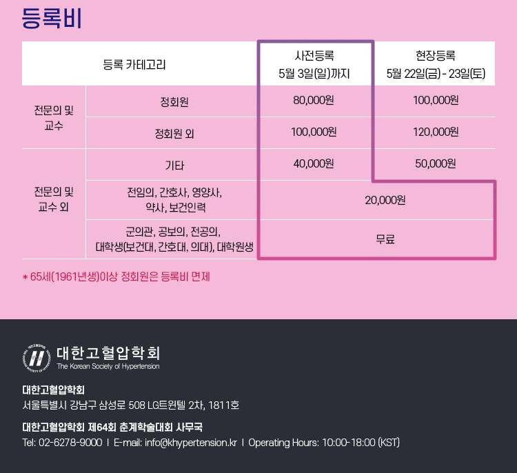 [대한고혈압학회] 2026년도 제64회 춘계학술대회: 사전등록연장안내