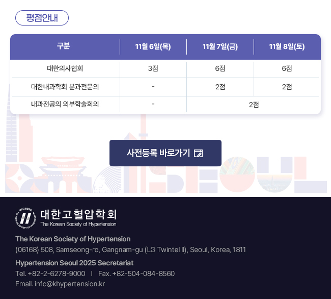 [대한고혈압학회] Hypertension Seoul 2025 : 사전등록연장안내 (10월 17일(금)까지)